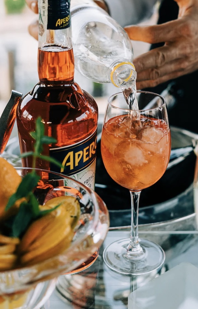 An Aperol spritz is the perfect aperitif. Aperol actually derives it’s name from the french term – aperitif. What is an aperitif you ask? It is a light cocktail that is served before a meal and commonly stimulates the appetite. So, it is indeed the perfect libation for cocktail hour. Due to the bitter notes in Aperol, salty and sweet snacks are perfect companions. I recommend olives, mild cheeses (such as goat or burrata), fruit and nuts.