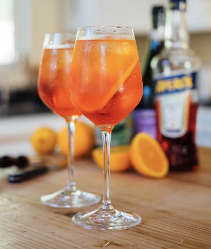Equal parts Aperol Equal parts Prosecco Splash of Club Soda
